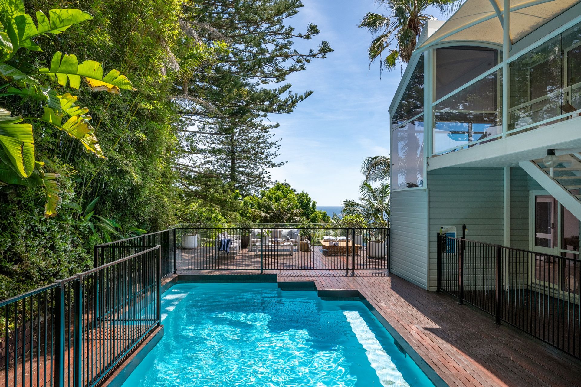 Welcome to Azzure, a breathtaking coastal sanctuary positioned high on the Whale Beach headland with panoramic ocean views across Dolphin Bay to Cape Three Points. Privately set on a double block and immersed in tropical gardens, this north-facing beach house delivers the ultimate luxury holiday escape—where it feels like it’s just you, the ocean and the sky.