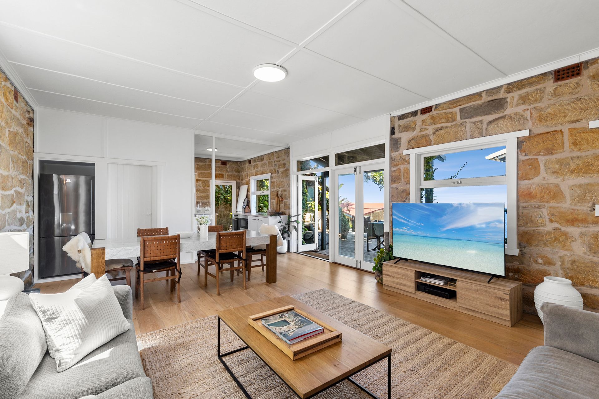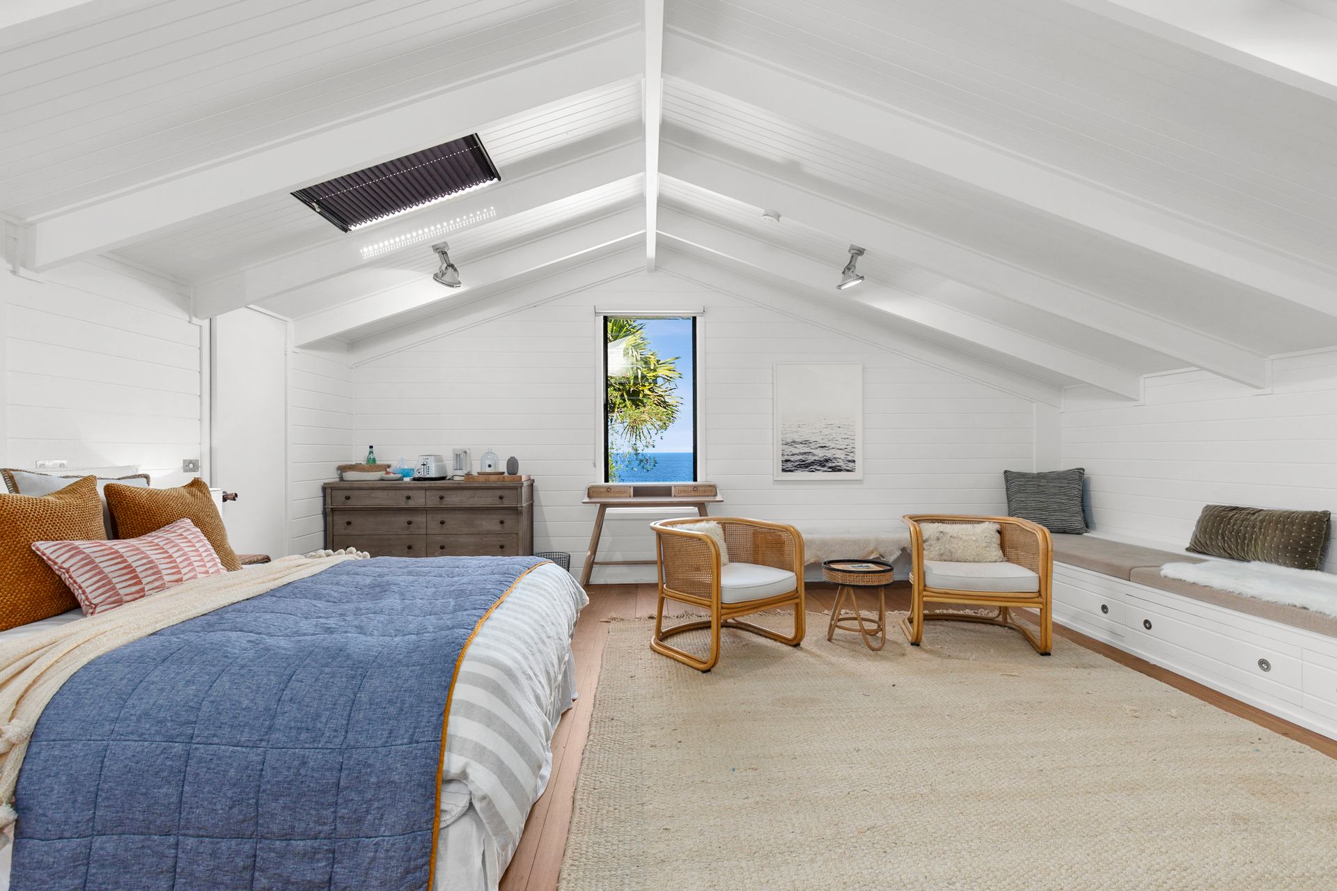 Bathed in morning sunlight, the house exudes a laid-back coastal vibe with warm timber accents and exposed sandstone walls, creating a natural, inviting atmosphere. Every bedroom and living space opens onto a balcony with breathtaking ocean views, ensuring you’re never far from the beauty of the sea.