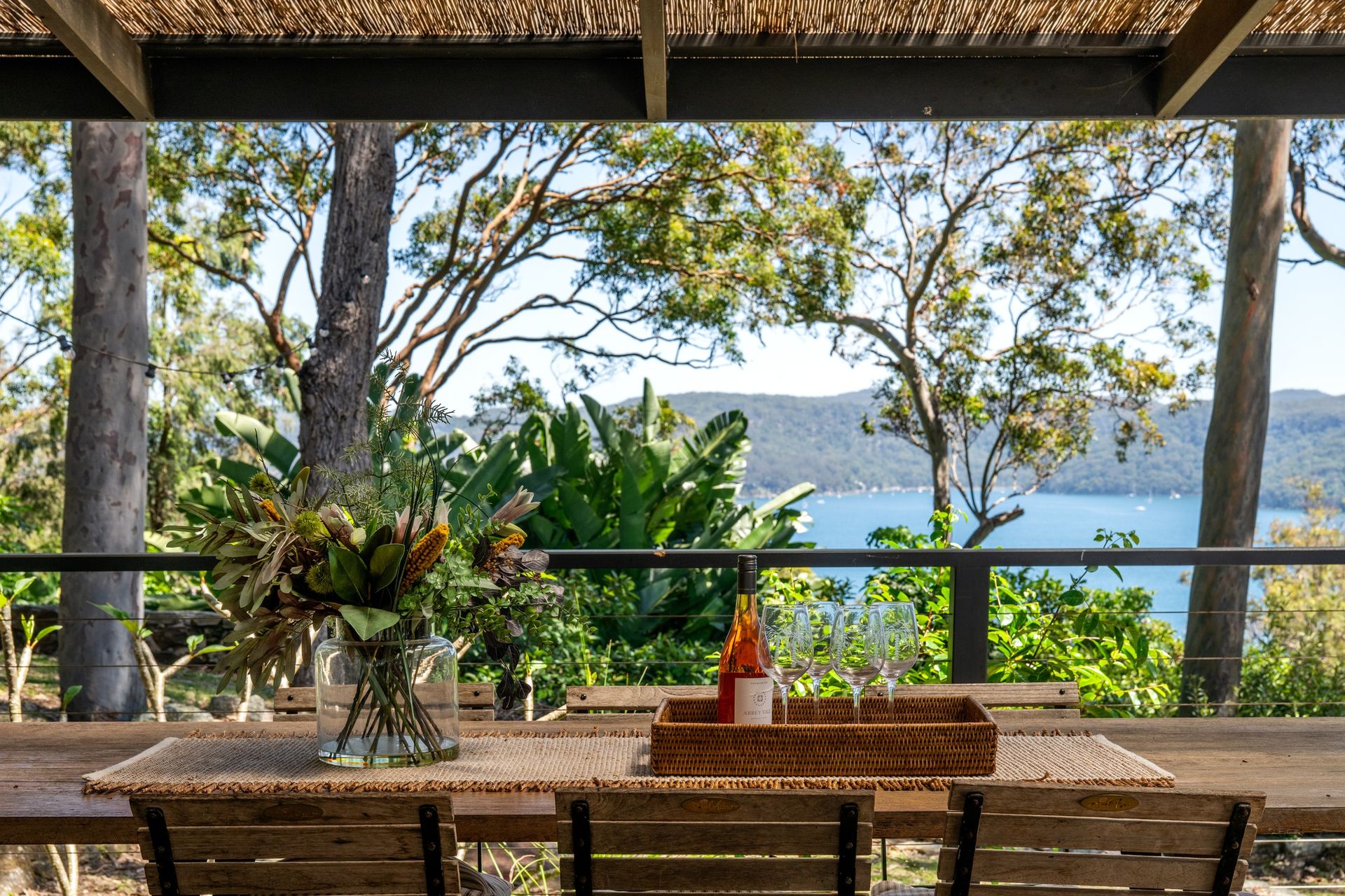 Escape to a Hampton’s retreat with breathtaking views over Pittwater and Careel Bay.